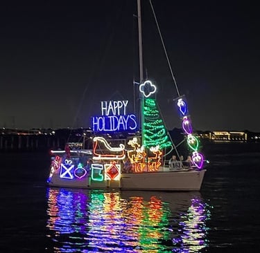 Today, I am going to settle for just getting off this boat. We have been working hard and tonight we are going to treat ourselves to dinner out on the Boardwalk while we watch all the pretty boats go by, decked out with their twinkling Christmas lights. Yep, just going to sit there ‘waistin’ time’ Otis Redding style.