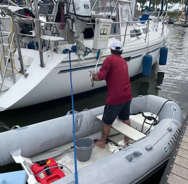 Turns out we already had a Bosun's chair, thanks to the previous owner. But prior to borrowing Len's we had no idea what it was, some kind of cover for the radar dome or the BBQ grill??!