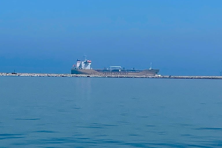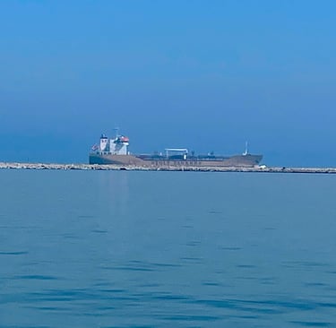 Once the fog cleared we could see ships in the channel on the other side of what is known as Redfish Island