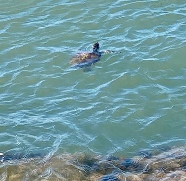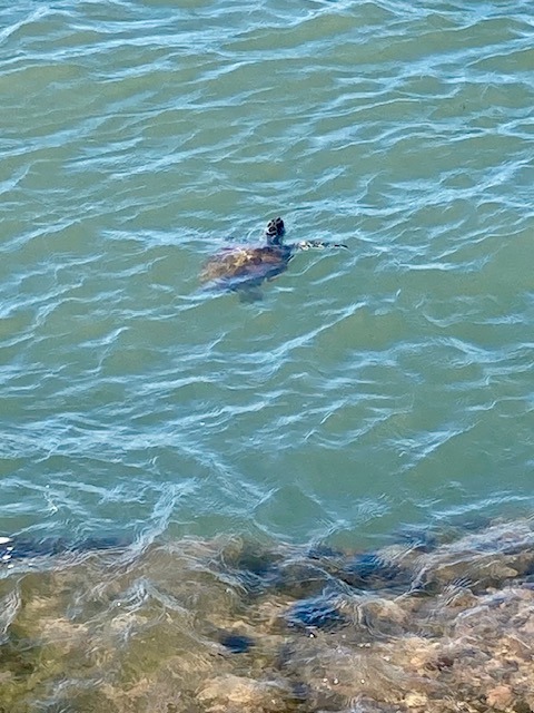 On days we didn’t want to wander far we found plenty to do right at the marina. There is a park where benches line the channel, great for relaxing, fishing, or watching ships go by. You can hop on a pirate party boat or a dolphin watching tour, but this is a prime spot for dolphin watching that won’t cost you a penny. We saw lots of dolphins, had a close encounter with a pelican and even saw a sea turtle swim by.