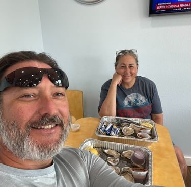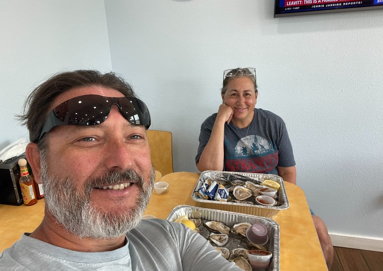 We walked to the art center where they have a gallery and offer a variety of art classes from copper working to watercolor and acrylics and wandered through a few shops. Across from the art center is Paul’s seafood house, we were lured in for lunch by their dollar oyster deal! On our way back, we also stopped at the library to make copies of our passports and paperwork for Mexico.