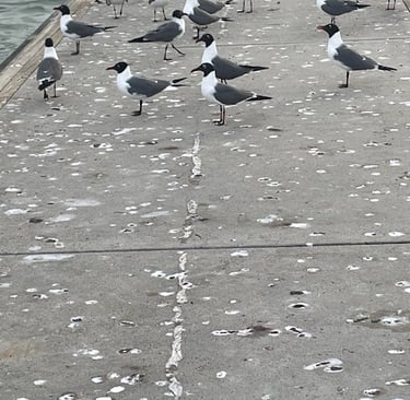 The only drawback to staying here was the seagulls. Not only do they make a mess of the docks (this was taken three days after it was pressure washed), but they make a tremendous amount of noise very early every morning. Fortunately, for whatever reason, they seem to prefer pooping on the dock to pooping on the boats, much to our relief!