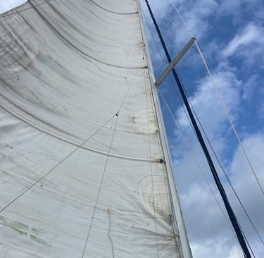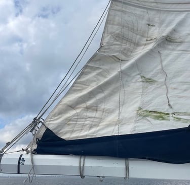 By the third evening power was back on; the temperature warmed up a little too. Since we won’t be doing any sailing until the wind direction changes course again, we decided to send out our main sail to be cleaned. Like the rest of the boat when we purchased her, it had become mildewy as it sat zipped up in its stack-pack.