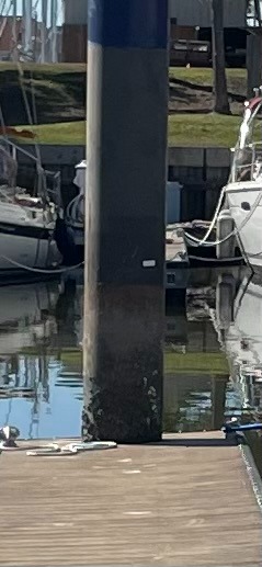 That is what we had to ask ourselves this week. The cold winds from the north not only pushed out the nice weather we were experiencing from the south, but these northerlies also push a lot of the water out of the bay. Last week Chris marked the water level at our slip on the day we went out sailing with white tape. You can see how low it is now.
